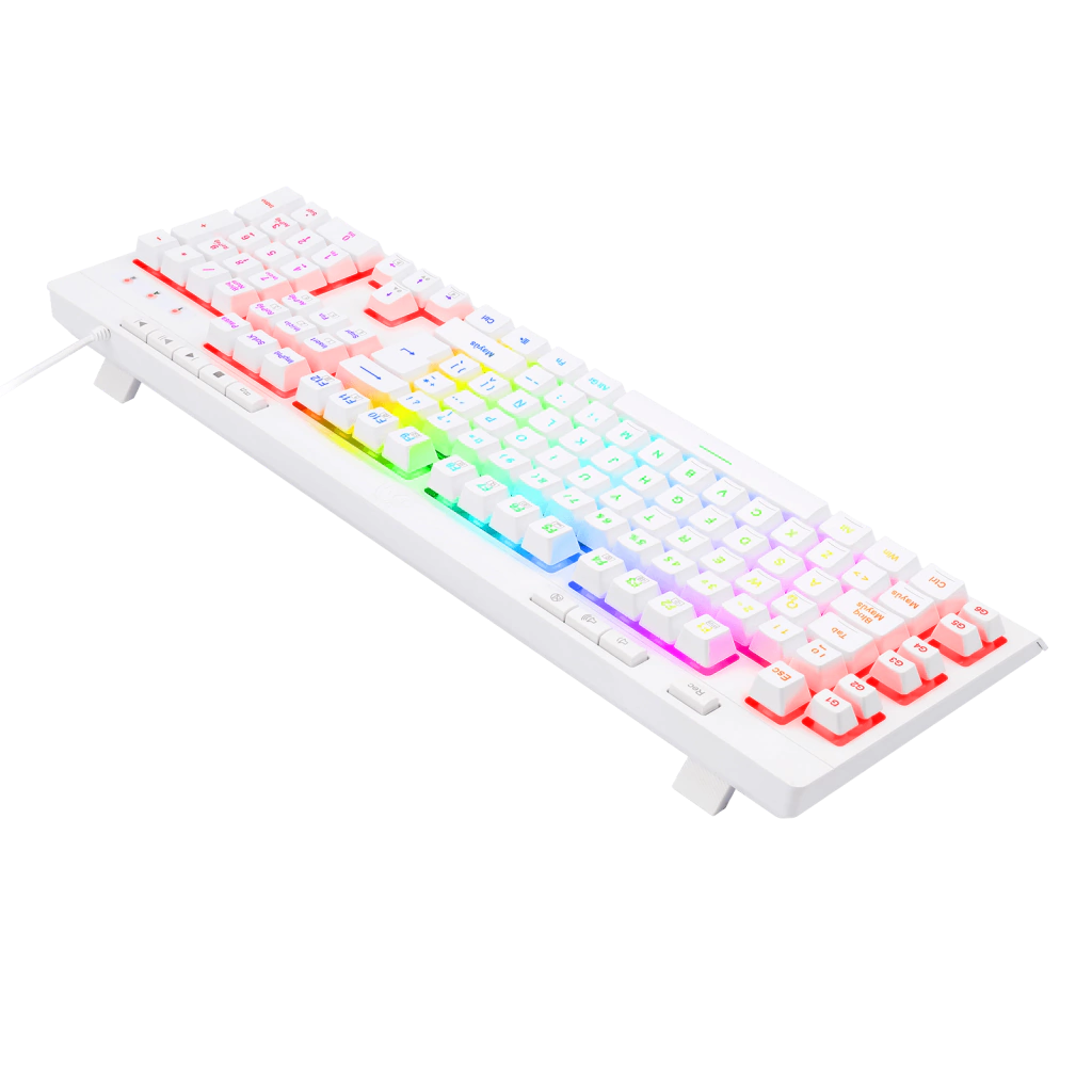 Cada tecla o keycap es el resultado de la combinación y encastración de dos piezas, una de color y otra transparente. El efecto práctico es una tecla muy robusta y súper duradera, que no se borronea ni se despinta.